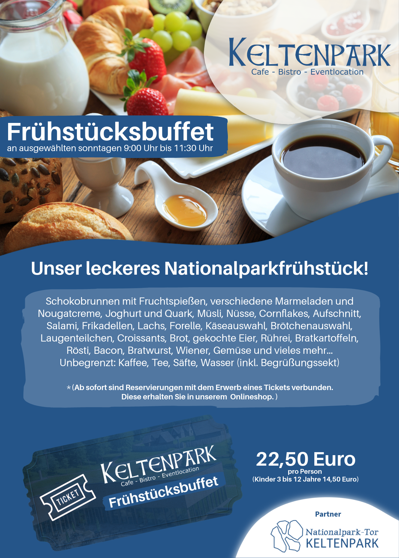 Sonntagen von 9:00 Uhr bis 11:30 Uhr in unserem Café Bistro Keltenpark am Nationalpark-Tor Keltenpark an.